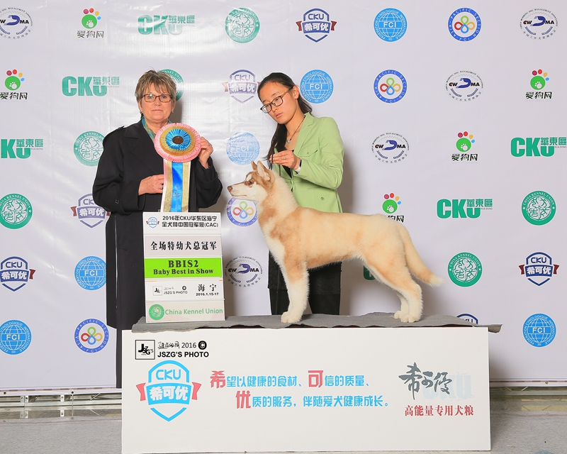 | 2016-01-17/17 | 2016年CKU華東區(qū)希可優(yōu)全犬種國(guó)家冠軍展(CAC)1月17日 | 038 | BPBIS 1 | 特幼母犬組 | (澳大利亞)Sue Bruno 蘇·布魯諾 | ||||